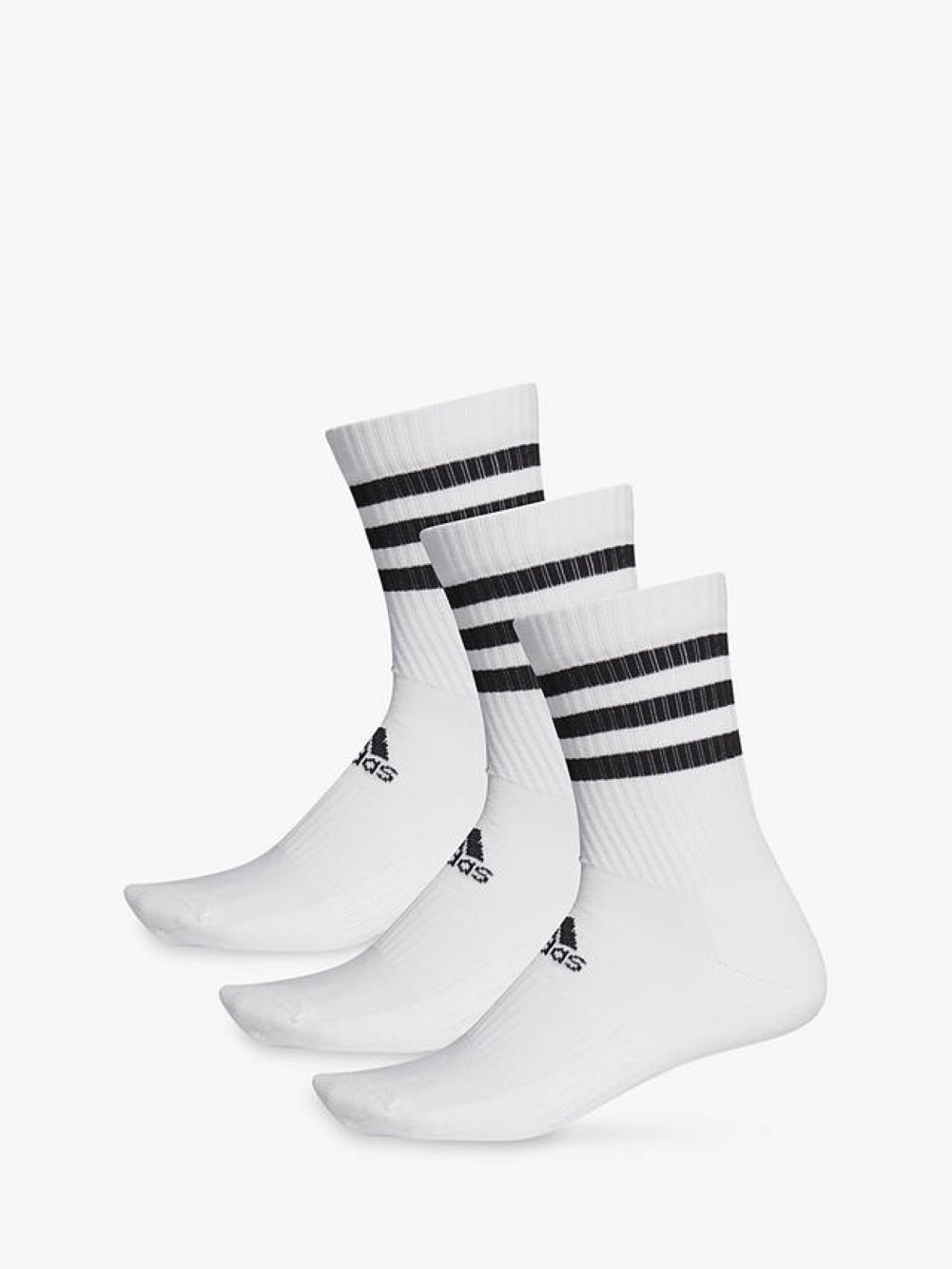 A strong athletic look meets foot-pampering softness. This trio of cotton-rich crew socks offers heel-to-toe cushioning for all-day comfort. Knit-in arch support and a smooth toe seam add to the snug fit and feel. The iconic 3-Stripes deliver instant adidas style.