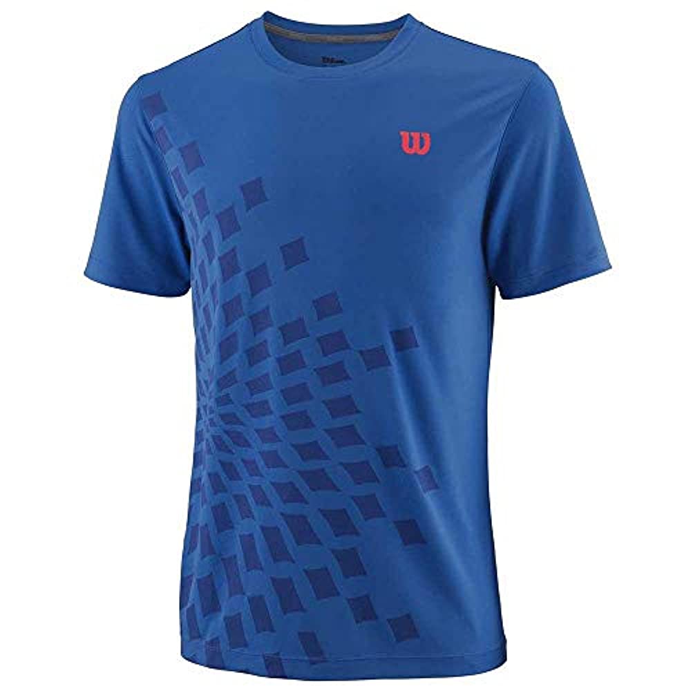 Wilson Men?s 2018 Urban Wolf II Aperta Crew T-Shirt Polyester t-shirt with cooling technology that?s activated on contact. NanoWik moisture movement technology provides ultimate comfort. Wilson branded neck tape and an explosive pattern makes this shirt stylish for your on court wear.